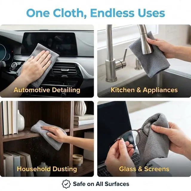 One of the standout features of these microfiber dust cloths is their incredible versatility. They excel at cleaning glasses and delicate screens without scratching, making them perfect for your electronic devices. But their usefulness doesn't stop there. From kitchen counters to car dashboards, FairyWaffle tackles it all with ease.