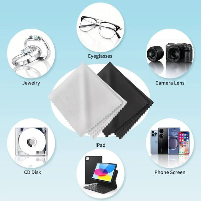 3. SAFE FOR ALL DELICATE SURFACES: Gentle and safe for eyeglasses, sunglasses, camera lenses, smartphones, tablets, LCD TV screens, and all delicate electronics. lens cloths for eyeglasses compact design fits neatly into your tablet case, purse, or pocket, providing convenient clarity anywhere you go.