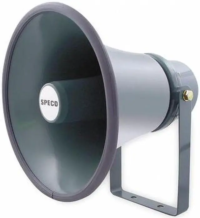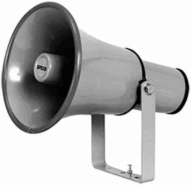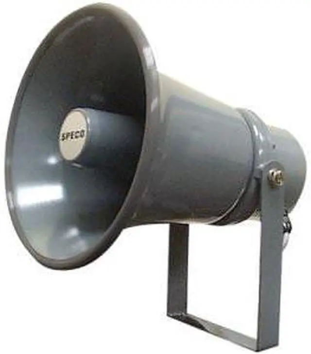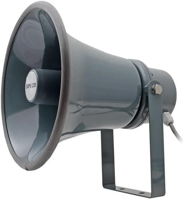 8" 70/25V Weatherproof PA Speaker HornThe 8" weatherproof PA speaker has a 70/25 volt line transformer. Its 25 volt line wattage taps for 15, 10, and 3.7 watts. It offers 70 volt line wattage taps for 15, 10, 5, 3, and 1 watts. It features a frequency response of 250 to 15 kHz with a power of 15 watt nom/30 watt maximum. Mounting bracket is included. Also known as -SPC15TSpeaker-SPECO 8 Weatherproof PA Speaker w/ Custom Cabling-Speco SPC-SPC15T 8 in. Weatherproof PA Speaker with Transform-SPECO 8" Weatherproof PA Speaker w/ Custom Cabling-SPECO SPC-SPC15T 8In Weatherproof Pa Speaker W/ Transform-Speco SPC15T Speaker