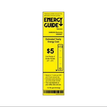 Typical Power Consumption: 20W Maximum Power Consumption: 33W Standby Power Consumption: Under 0.3W