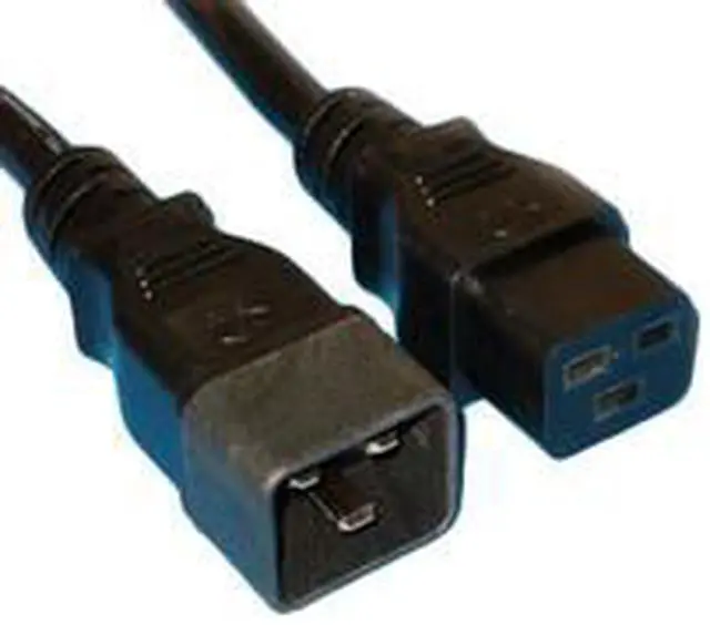 Power Extension Cord, Black, C20 to C19, 12AWG/3C, 20 Amp, 3 foot