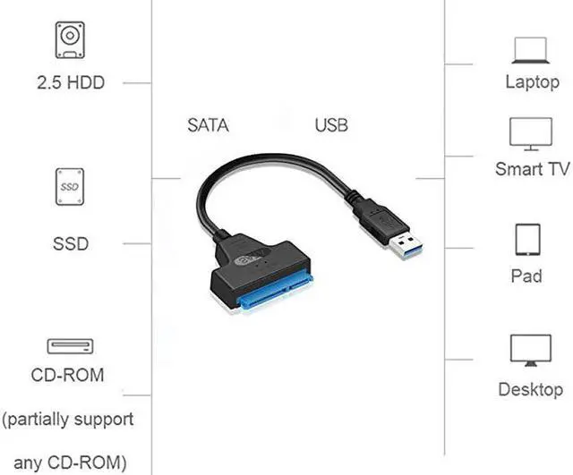 SATA SSD/HDD: SATA to USB 3.0 Adapter can easily connect a 2.5" SATA SSD or HDD with your computer to expand storage, upgrade system, back up files, retrieve and recover data, and transfer data. It is awsome for booting up old spare hard disks and recovering important files of broken PC.