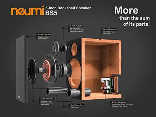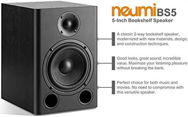 The BS5 is an exciting new speaker from NEUMITECH, designed for the budget-conscious music lover who wants a pair of simple, affordable, yet great sounding speakers. Due to its passive design, the BS5 requires a separate amplifier or receiver in order to play audio from a TV, computer, or record player. With classic styling cues, the BS5 is attractive yet unassuming, making it a great fit for the home, office, or garage. Tuned for a neutral sound signature, you will love its balanced sound with excellent midrange dynamics and superior bass extension.