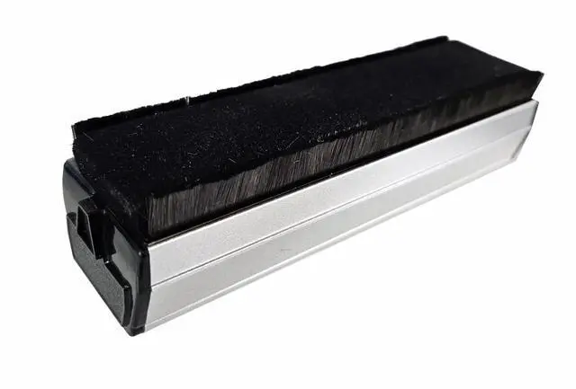 Extra-wide felt pad + dual carbon fiber brush with over 12000 nano-fine conductive bristles that eliminate static while removing dust and other fine particle from the vinyl LP record's surface and grooves. Extra large size brush provides more cleaning surface area for more efficient cleaning. Dry design does not require any fluid.