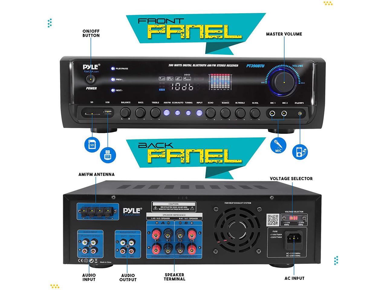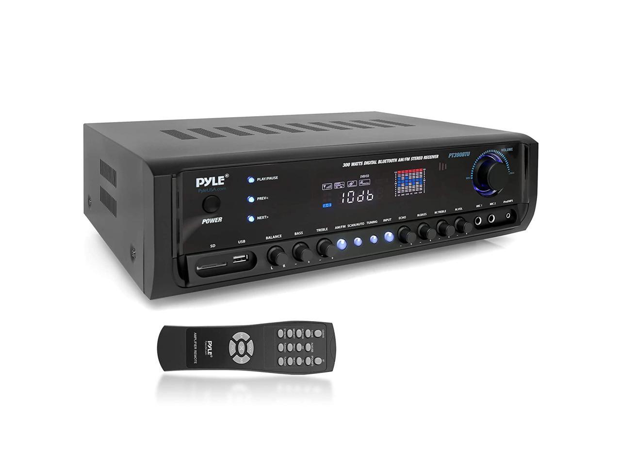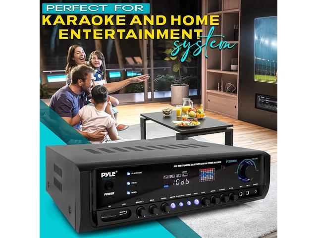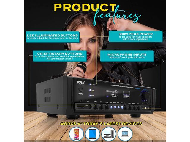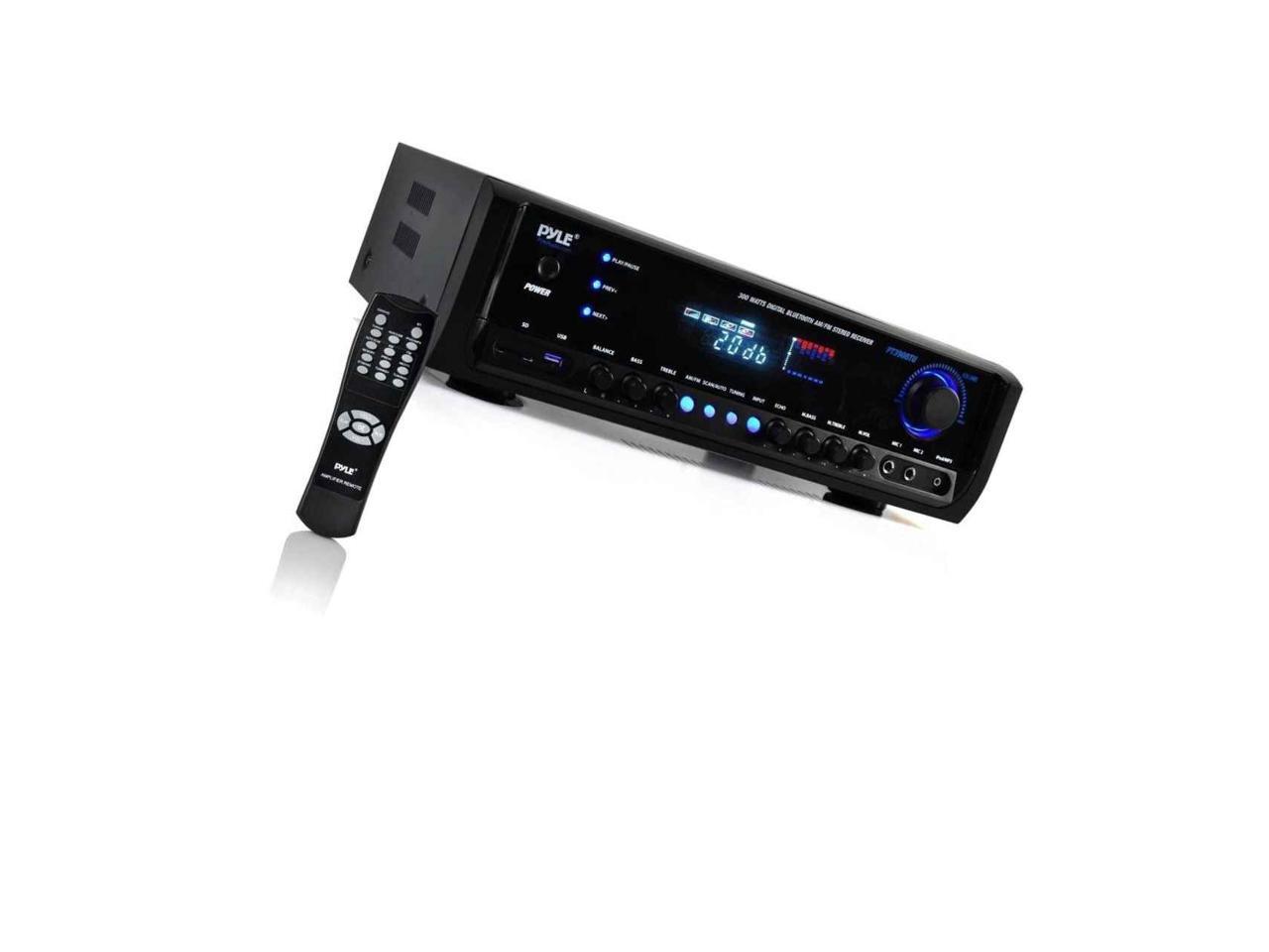 Digital Home Theater Bluetooth Stereo Receiver, Aux (3.5mm) Input, MP3/USB/SD/AM/FM Radio, (2) Mic Inputs, 300 Watt