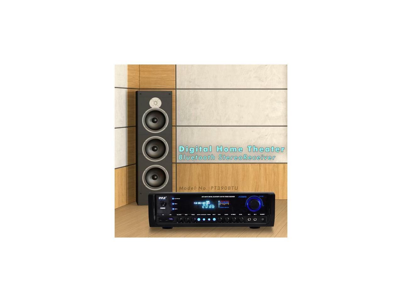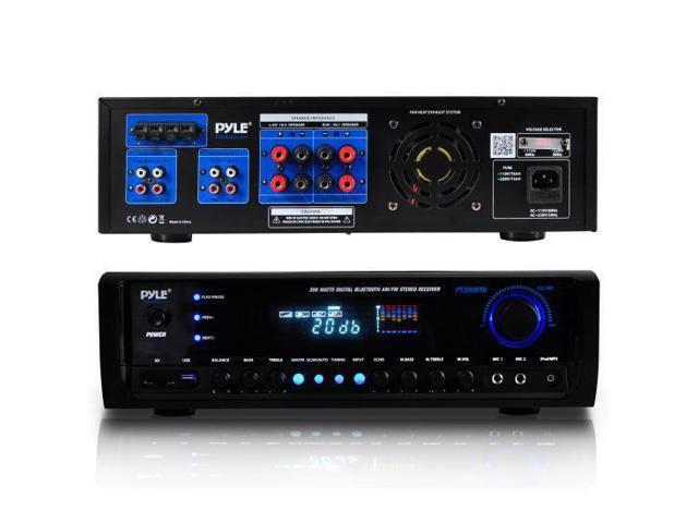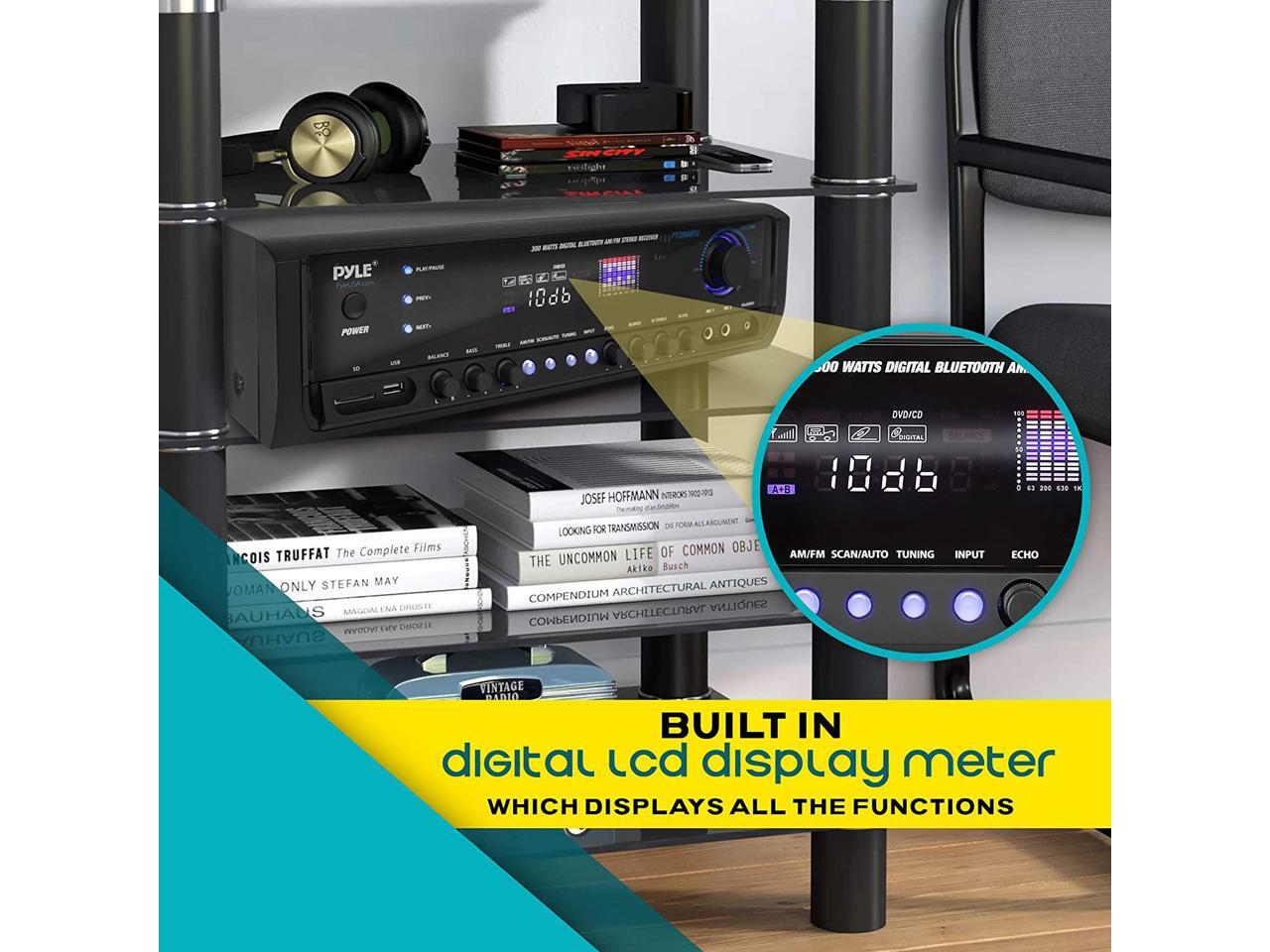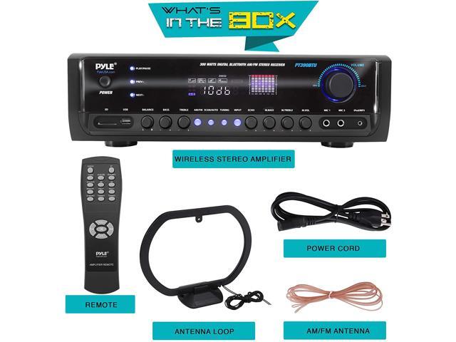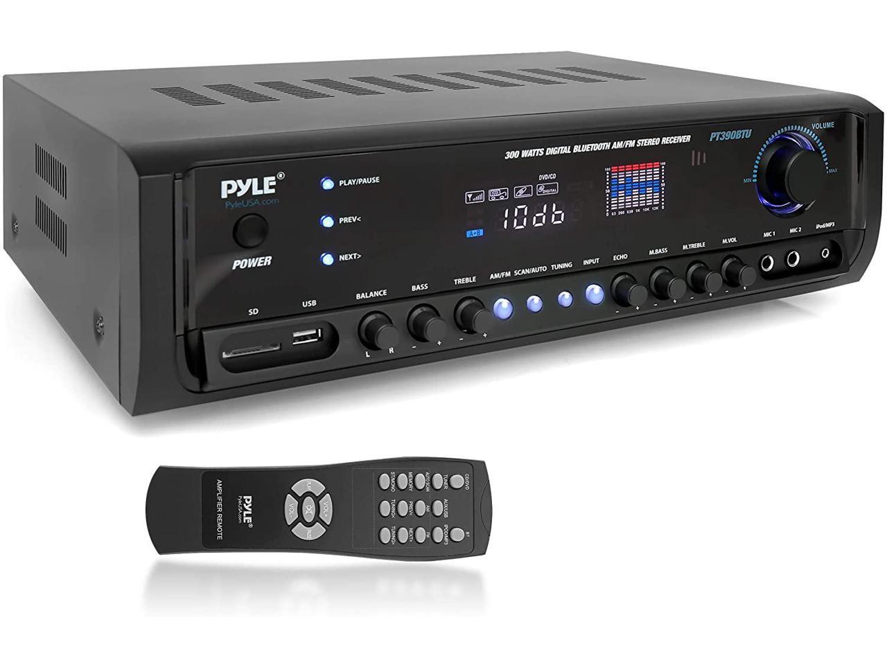 Digital Home Theater Bluetooth Stereo Receiver, Aux (3.5mm) Input, MP3/USB/SD/AM/FM Radio, (2) Mic Inputs, 300 Watt