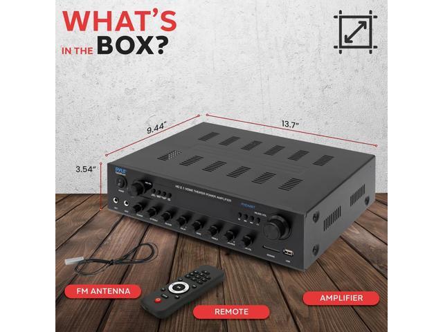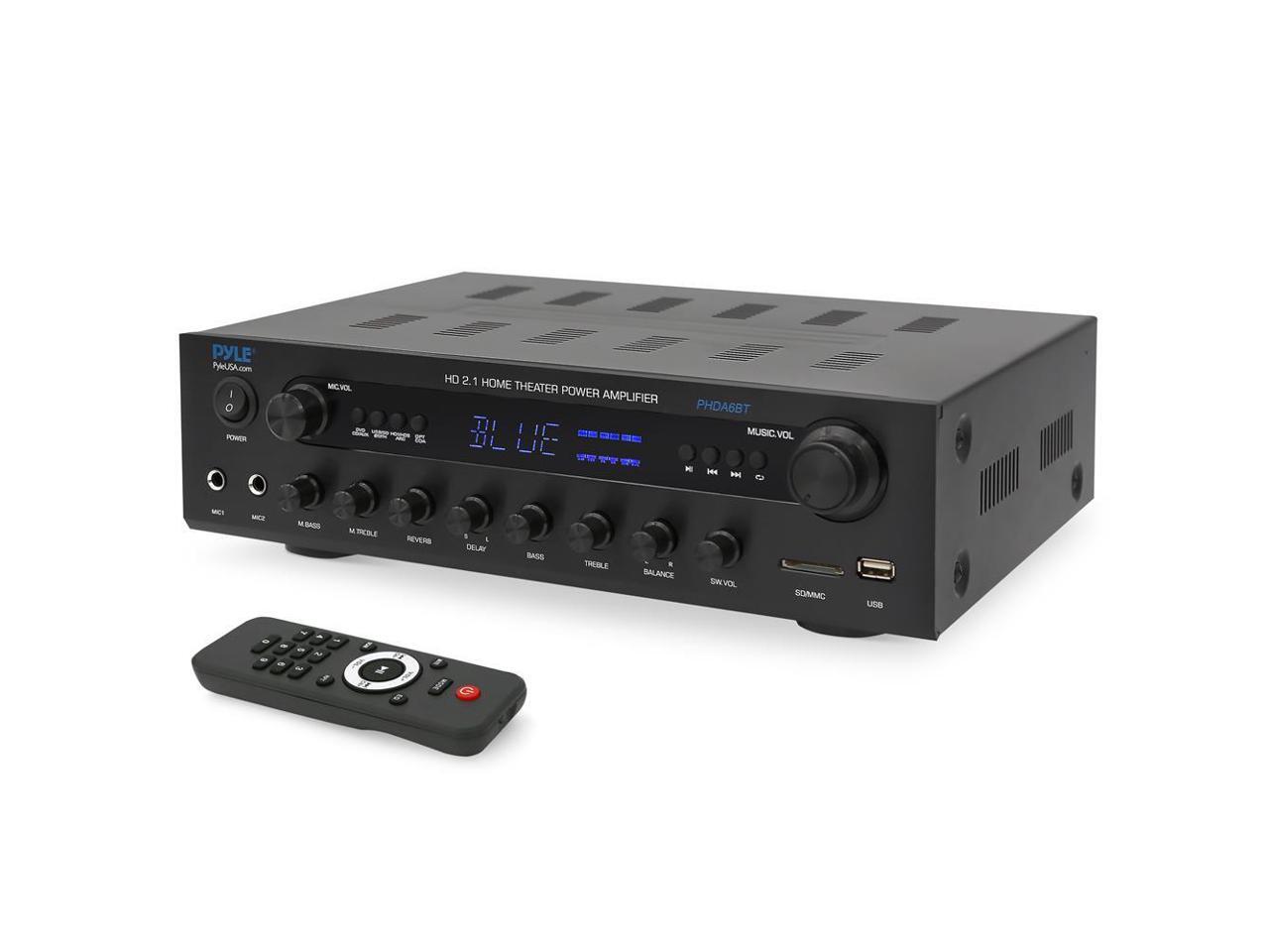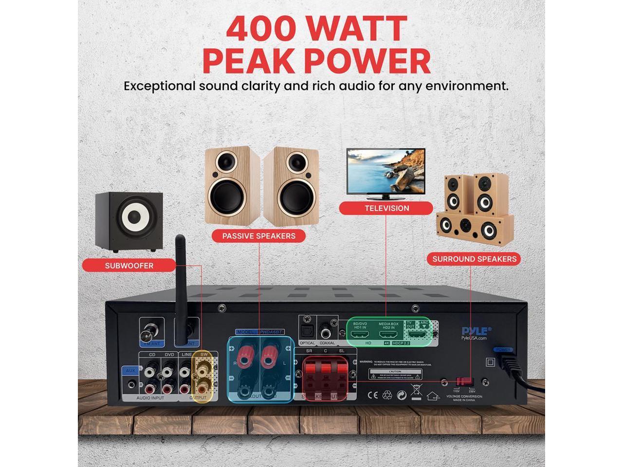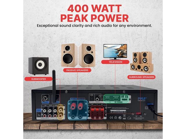 Pyle 400W Power Bluetooth Stereo Amplifier Receiver FM Radio, USB & SD Card, Microphone Inputs - PHDA6BT