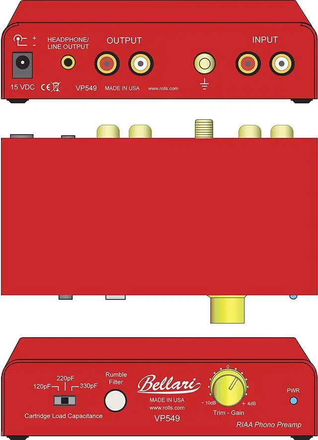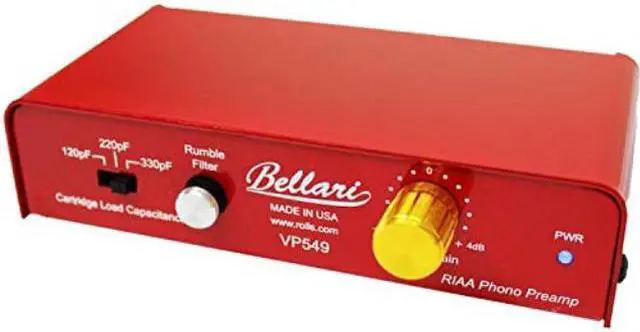 VP549 phono pre has excellent true sound resolution. It's tone center is right in the middle of the music. It performs very well on the extremes, and never looses its solid performance in the meat of the music. Has a well rounded sound when needed, but has a very surprising shimmer when called on. The VP549 is bold, yet has a very surprising attack that will take your rig to the next level. Hundreds of hours went in to listening and improving the design. All Bellari products are hand built in Salt Lake City, Utah by people who care about high quality music.