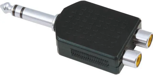 Attaches a 1/4" stereo female to a dual RCA male.