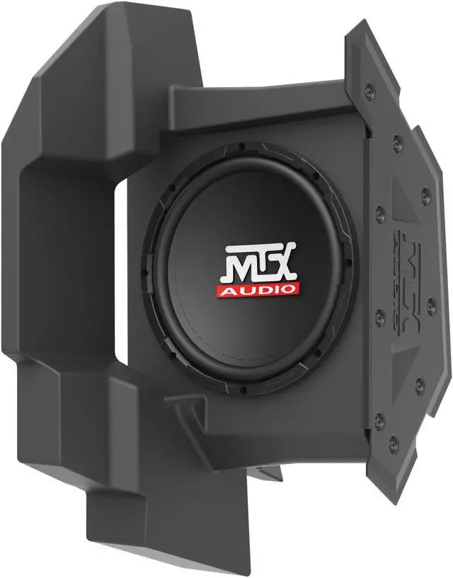 Polaris General Amplified Subwoofer Enclosure. The MTX General-10 is a subwoofer enclosure designed to mount directly under the driver's side dash of specific Polaris General UTV models. The subwoofer enclosure is rotationally molded using linear low density polyethylene (LLDPE) creating a durable finish that is weather resistant and durable. The enclosure mounts using existing mounting locations and does not require any cutting or drilling to install. The enclosure includes a 10" weather resistant 250-watt RMS subwoofer featuring a polypropylene cone that delivers exceptional low frequency output. The unit includes an integrated 250-watt class D amplifier that only requires power and signal.