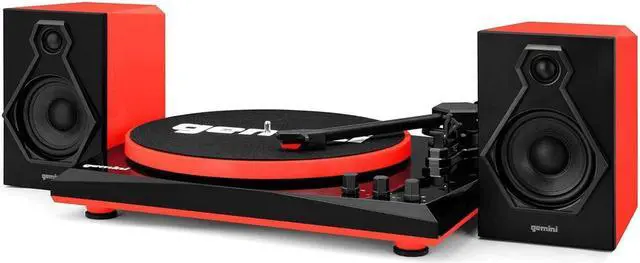 The Gemini TT-900 Vinyl Record Player Turntable with Bluetooth and Dual Stereo Speakers combines the sharp good looks of modern design with the rich warm sound of analog vinyl to create the ultimate bookshelf stereo system. This unit's amazing sound starts with the 2-speed belt-drive automatic platter and included stereo cartridge and stylus, capturing the incredible depth and detail of vinyl. From there it's processed by the integrated amplifier and sent out to a pair of 25-watt, 2-way stereo speakers, creating the kind of sound stage that puts you in the middle of any recording.