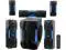 The 8 subwooferprovides super clear deep, rich bass with no rattling or discernibledistortion even at high volumes. It has a built in media player/receiverwith digital readout, a 5-band EQ, FM radio, Bluetooth, SD/USB input,and two ? MIC inputs with echo control for Karaoke on the front. On therear you have 5 RCA audio outputs, 6 RCA DVD audio inputs, 2 RCA AUXinputs, and an FM antenna input. There are also 5 RCA inputs to powereach speaker's LED. A full function remote control is included so younever have to leave the comfort of your chair. The system also featuresan LED light system with multiple modes. The subwoofer LEDs can be setto blink to the beat, look like an EQ spectrum analyzer, or changecolors (constant or cycle). The satellite speakers have cool blue LEDsthat can be turned on or off.