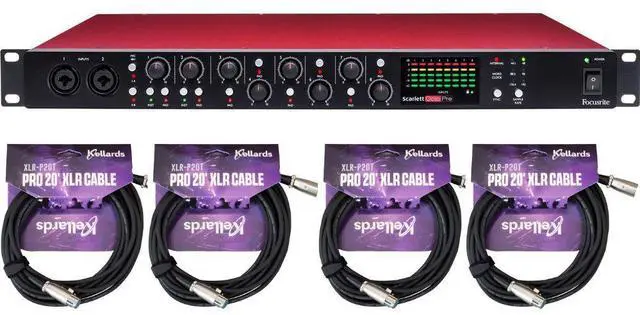 Expand your system's recording capability with the Focusrite Scarlett OctoPre, a slim 1 RU rackmount device laden with eight Scarlett microphone preamps and onboard high-resolution AD convertersa perfect addition to any home/project studio, live sound mixing console, or mobile recording rig that has available ADAT digital inputs or unused analog line inputs. All eight XLR-1/4" combo inputs can accept mic- or line-level signal, and the front-panel input jacks can also accommodate the 1/4" outputs of instruments, letting you plug a guitar or a bass straight into the Scarlett OctoPre. Pads on every channel allow you to capture the sound of high-level sound sources such as drums and cranked guitar amps, and 48V phantom power can be instantiated in two 4-channel banks to run condenser microphones and active DI boxes. Bundle with Kellards XLR-P20T Pro 20 ft XLR Microphone Cable (4 Pack).