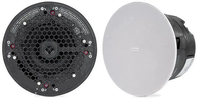 The Extron SoundField XD model SF 26CT is a 6.5 -inch two-way ceiling speaker featuring an 8-inch (203 mm) deep composite back can for use in plenum rated ceiling environments. The driver complement includes a 6.5 -inch (165 mm) woofer coupled to a 3/4-inch (19 mm) ferrofluid-cooled dome tweeter. The SF 26CT offers both direct 8 ohm and 70/100 volt operation with a behind-the-grille, six position power selector switch. With high impedance taps at 8, 16, 32, and 64 watts, the SF 26CT is ideal for applications that require a high power distributed speaker system.
