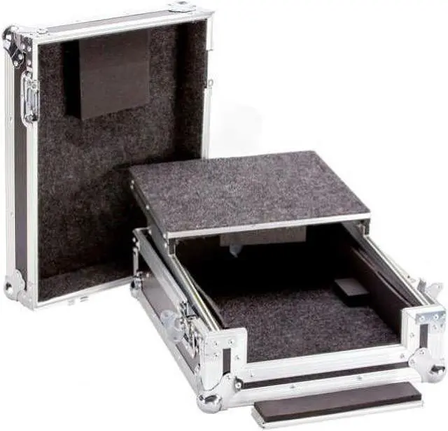 Electronics equipment safe travel case designed for touring. One chrome plated heavy duty spring loaded retractable carry handles.ATA-300 type durable transport case is a heavy duty professional style with industry recognized impact standards ideal for safe travel.Laptop shelf to provide convenient use of laptop PC or other equipment.3/8-in thick laminated plywood for optimal protection. Heavy duty chrome plated ball corners w/ stacking dimple on bottom side allows for centering and stability when stacking multiple units.Top quality bottom rubber feet with heavy duty bolts & recessed t-nuts.Rear side cable port for convenient cable access.Industrial grade recessed spring loaded split dish butterfly closure latches with padlock tab with a shackle opening of about 7mm.Convenient cable raceway beneath removable logo printed top board.Heavy duty chrome plated ball corners allow for optimal transport edge protection.Includes a removable accessory door.Includes movable foam cushions.Includes extra foam cushioning material.Includes hook loop tape for convenience.Well Riveted Heavy Duty Double Edge Tongue and Groove Impact Resistant Aluminum FrameElectronics Equipment Shown, Described or Referenced is not Included with the Case, the Item is a Case Which Allows you to Use, Mount or Transport your Own Equipment.For Reference the Pioneer DJM-800 is the Following Dimensions (W x D x H inches); 12.6 x 15.0 x 4.3 at a Weight of: 16.5 lbsFor Reference the Pioneer DJM-700 is the Following Dimensions (W x D x H inches); 12.6 x 15.3 x 4.3 at a Weight of: 14.6 lbsFor Reference the Behringer DJX750 is the Following Dimensions (H x W x D inches); 4.1 x 12.6 x 14.6 at a Weight of: 8.6 lbsFor Reference the Behringer DDM4000 is the Following Dimensions (H x W x D inches); 4.3 x 12.6 x 15.4 at a Weight of: 12.35 lbsUnpackaged Dimensions: 20.67-in x 9.45-in x 16.73-inShipping Box Dimensions: 10.24-in x 17.34-in x 21.08-inUnpackaged Weight: 24.25 LbsPackaged Weight: 26.46 Lbs
