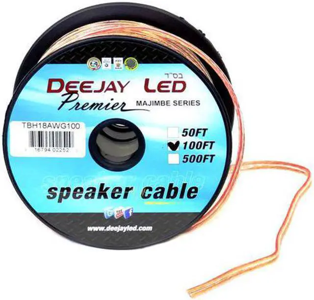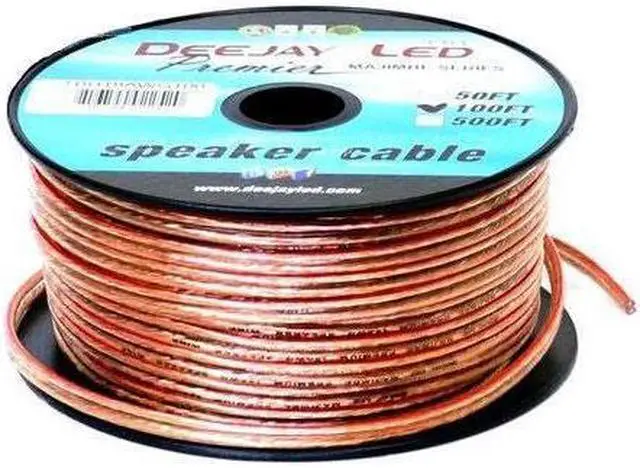 100-Foot Spool Premium Cable. 2-Conductor w/Red Color Coded Stripe. 18 Gauge Two-Conductor Stranded Speaker Cable. Ideal for home, car or office for connecting a receiver or amplifier to speakers for great sound. Can also be used for lamp wiring.Please check power requirements and gauge thickness before using any wiring product