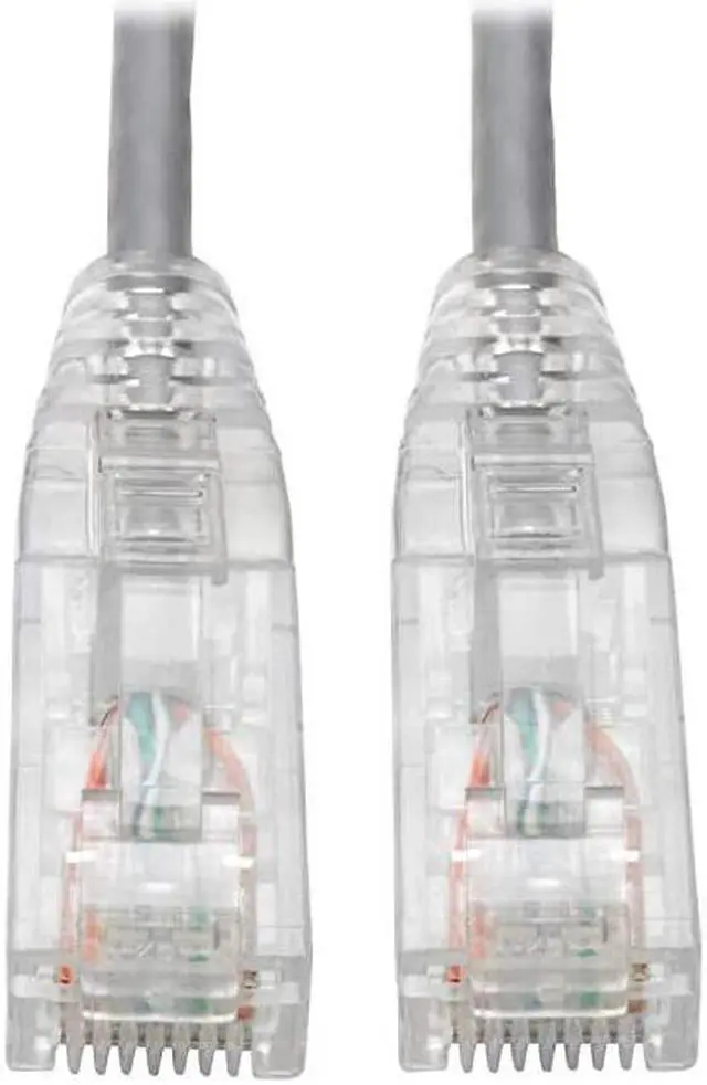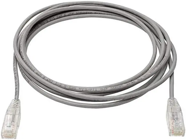 Gray|Size: 10 ft. Cat6 UTP Patch Cable Ideal for Your Gigabit Ethernet Network. This Cat6 UTP cable with RJ45 connectors is recommended for connecting network components like printers, computers, copiers, routers, servers, modems and switches in high-density data centers. Designed for fast transmission and excellent signal quality, this 10-foot gray cable ensures peak performance throughout your local area network (LAN). Special Slim Design for Better Airflow and Easier Installation This Cat6 UTP patch cord is more than 38% smaller in diameter than standard Cat6 cable. This increases airflow in tight spaces, which helps keep your equipment cool and properly functioning. It also makes the cable easier to install around corners and through cable management panels. Snagless RJ45 Male Connectors Add Extra Protection The RJ45 connectors' snagless design protects the locking tabs from being damaged or broken off during installation. Color-Coded to Avoid Misidentification That Can Cause Costly Downtime This Cat6 UTP patch cable features a gray PVC jacket. The color-coding allows easy, fast identification in a crowded rack or workstation and helps prevent the cable from becoming inadvertently disconnected. Premium Construction for Superior Performance Manufactured from 28 AWG copper wire, the four-pair stranded cable is rated for speeds up to 1 Gbps.