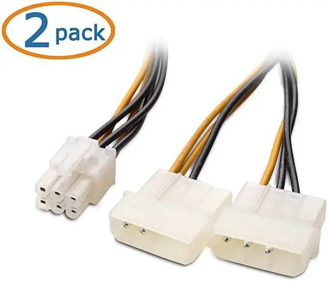 ***** **********Best Quality Guranteed. *****PCI EXPRESS POWER video card power adapter connects a 6 pin male to a PCIe video card; Use an existing Molex power supply with two spare power connections*****PSU UPGRADE SAVER power provides an option for a power supply without a PCIe connection for powering your GPU; Dual Molex connectors are designed to connect to separate rails on different Molex daisy chains to power a PCIe video graphics card from an older PSU*****6PIN PCIe to DUAL MOLEX female to male provides a convenient solution for video graphics card power with two Molex connectors; Ideal for GPU cards that require more power*****STURDY GRAPHICS CARD Molex to 6 pin PCIe adapter has male connectors and a female PCI connector with a latch to prevent accidental disconnections*****VIDEO GRAPHICS CARD GPU is compatible with graphics cards from popular manufacturers such as ASUS GeForce GTX 750Ti, EVGA GeForce GTX 750 Ti / GT 740 / GTX 950 / GTX 960 / GTX 980Ti, GTX 1050 Ti, Gigabyte