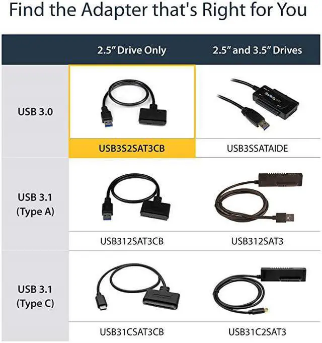 This SATA to USB cable is an external drive adapter that gives you quick and easy access to a SATA drive through the USB-A port on a laptop. Upgrade the Drive on Your Laptop This SATA solid-state (SSD) or hard drive (HDD) adapter lets you upgrade to an external 2.5"" SATA SSD or HDD.