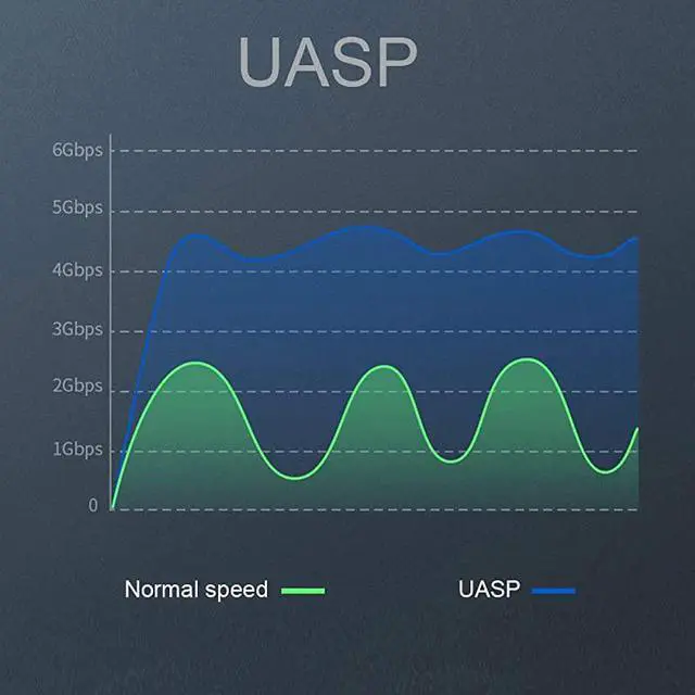 FAST SPEED WITH UASP: With standard USB 3.0 and SATA III connectors ready, it supports super data transfer speed of 5Gbps. Plus accelerated transmission protocols--UASP and TRIM, it performs 70% faster at reading and 40% faster at writing than conventional USB 3.0 when connected to a computer that also supports UASP. The advanced ASM1153E chipset greatly improves the performance of data transfer. ***** *****NO