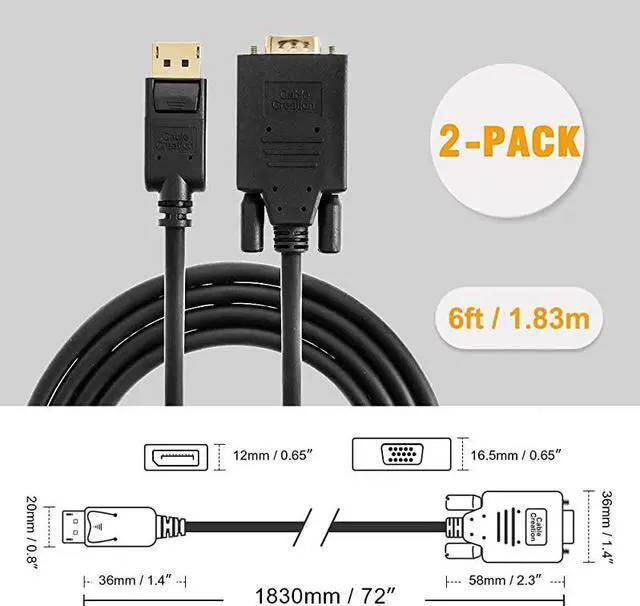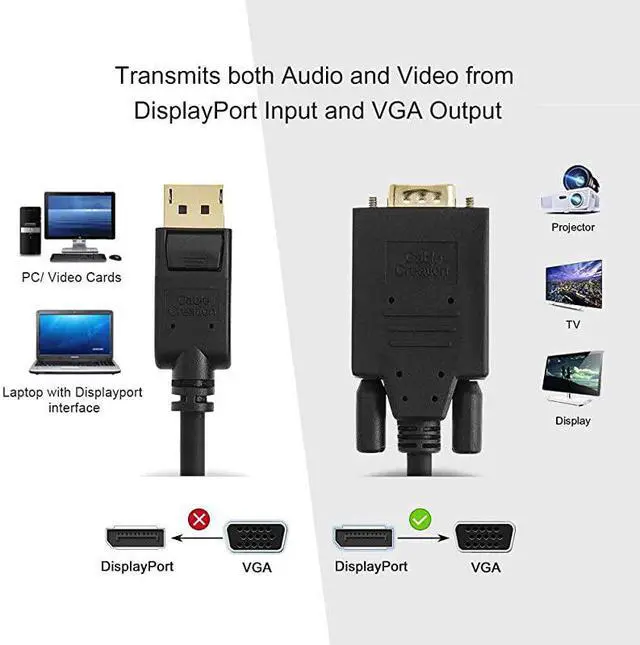 Video Resolution: Display port to VGA cable provides bandwidth up to 10.8 gbps over 2 lanes, integrated triple 10-bit, 162 mhz video DAC for analog VGA signal output, supports up to 1080p full HD, 1920 x 1200 @ 60 Hz/ 1080P (Full HD) resolution. Support mirror and extend dual mode, connect and conf