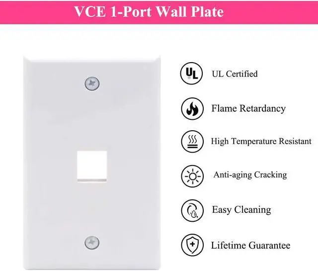 VCE 1 Port Keystone Jack Wall Plate in White Quick and easy to install