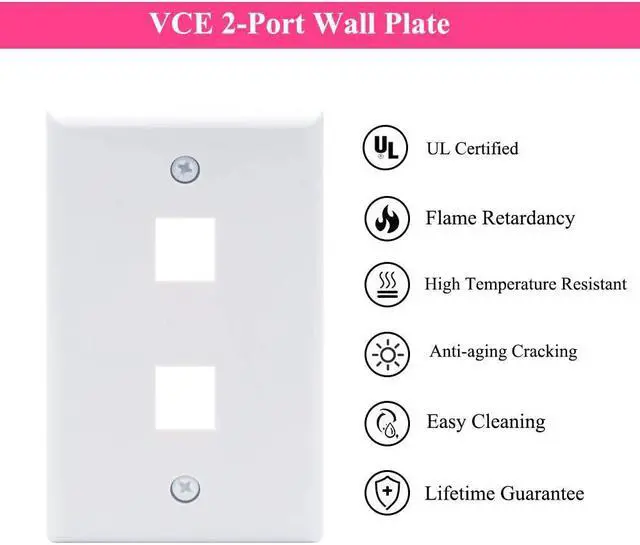 VCE Two Port Keystone Jack Wall Plate in White Quick and easy to install