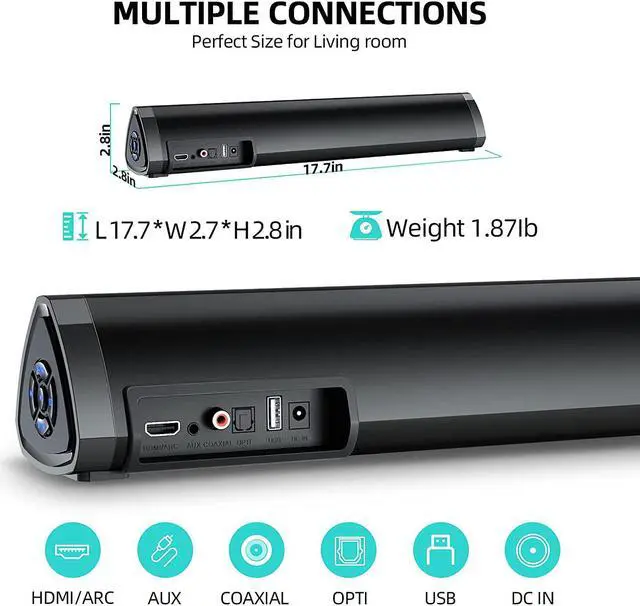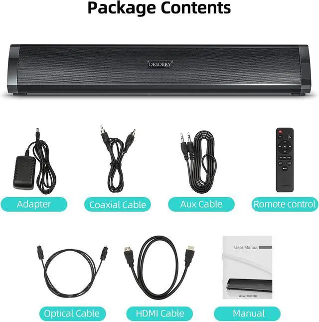 DESOBRY-Compact Size 17 inch Sound bar for TV with Bluetooth 5.0