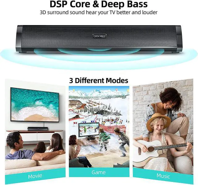 Sound bar built-in DSP & 3 EQ modes:Music, Movie, Game