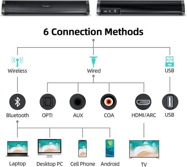 Wireless(Bluetooth 5.0 soundbar work with windows Android iOS system)
