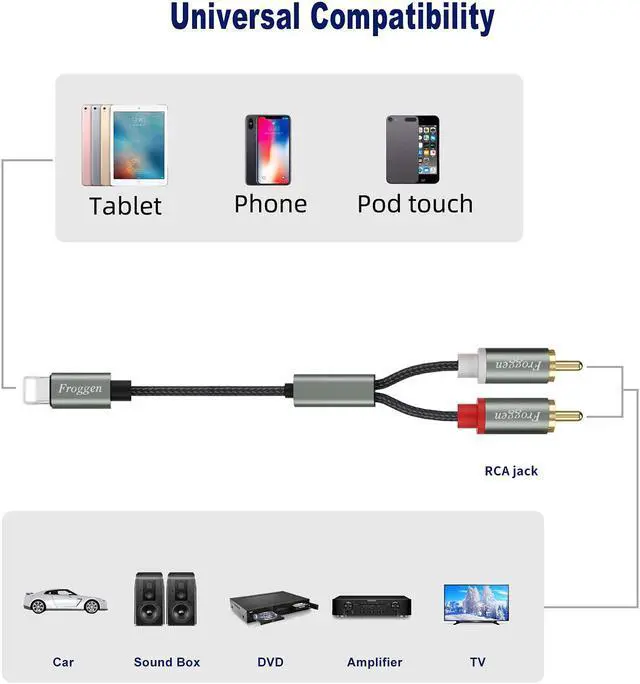 With the Smartphones(12/11/Xs/Xr/SE/X/8/7/6 Plus) to RCA Cable, It can easily play music and videos from Smartphone or Tablet to the home audio system so that you can make the speakers present clear sound quality without noise, experience the shock of audiovisual, and share with family and friends.