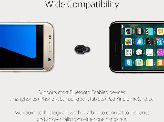 DISCREET EARBUD W/ NO FLASHTake this tiny earpiece anywhere and pop it into your ear when the opportunity arises, with no annoying flash to distract you every few seconds. So inconspicuous with very little ear protrusion, enjoy listening to your favorite music or podcast discreetly. NOTE: ONLY 1 EARBUD INCLUDED, NOT A PAIR. G8 IS A MONO EARBUD, 2 EARBUDS CANNOT CONNECT TO 1 DEVICE AT THE SAME TIME.
