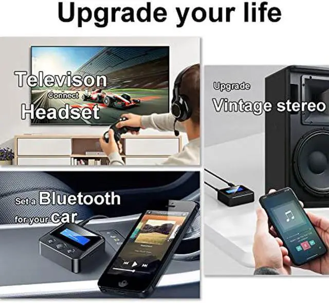 [(2-In-1 Bluetooth Audio Transceiver)] This little device can upgrade your old TV, PC, speaker, vintage stereo, or car stereo system! In the transmitter mode(TX), the Bluetooth audio adapter can make the old TV/ PC transmit wireless audio signals to your Bluetooth headset/speaker. In the receiver mode( RX), it can receive the favorite music from your cellphone, then play by the traditional wired speaker stereo, or vintage car audio system.