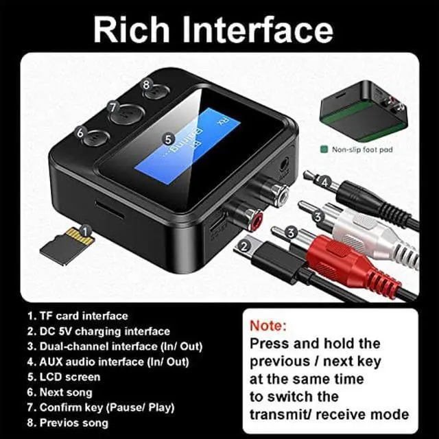 Bluetooth Transmitter, Bluetooth Audio Receiver, Wireless Audio Adapter, 2-in-1 Bluetooth 5.0 Audio Transmitter/Receiver, Support 3.5mm, RCA, TF Card, for TV/PC/Speaker/Headset/Car