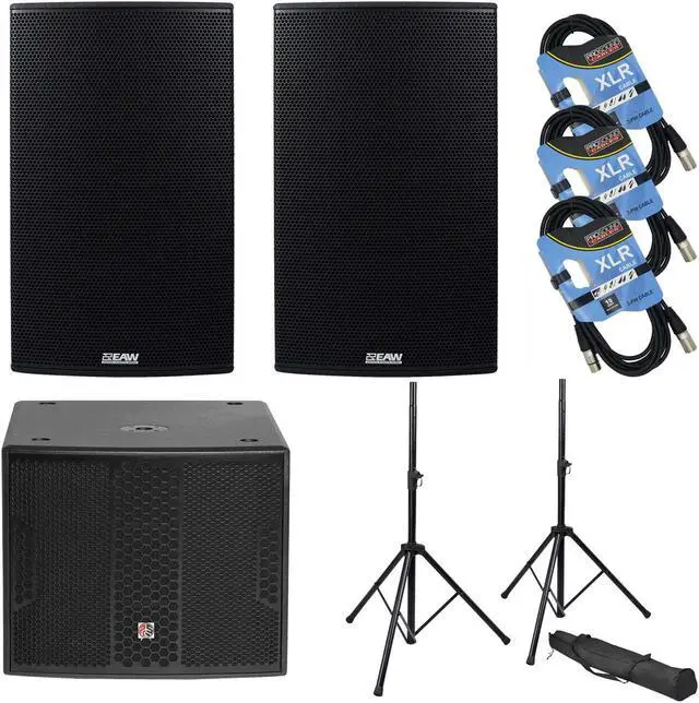 (2) EAW RS153 1500W 15 2-Way Self-Powered Loudspeaker PSG Audio Chaos 18 (2) Stands (3) XLR Cables Bundle