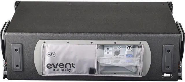 The single D. A. S. Event 210A is a powered, full-range, three-way line array module designed for professional live sound reinforcement applications. The speaker features three built-in Class-D amplifiers, providing 360W of power to the two 10 woofers and the 1.5 compression driver that combine to offer a frequency response of 70 Hz to 20 kHz and a peak SPL output of 134 dB. The two 10 woofers use a twin-band configuration, where each speaker operates in a specific frequency range. Advanced digital signal processing feeds the mid signal to only one of the two low-frequency drivers, while the other is rolled off.