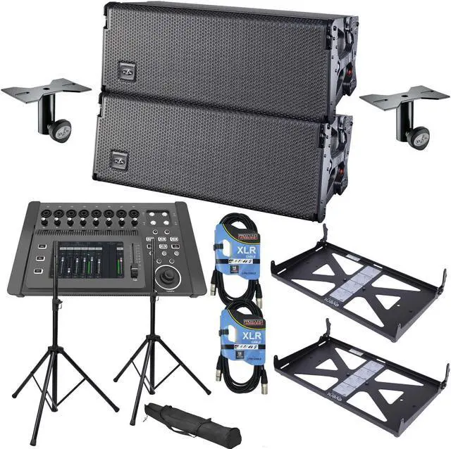 The ISO-flex painted birch plywood enclosure utilizes two bar handles for ease in transport, while the steel grille provides ample protection to the speakers drivers. A single array module can be placed on a quality speaker stand, while multiples can be used in ground-stack configurations. Up to 24 line array modules can be flown for the ultimate in large-scale sound reinforcement deployment. The D. A. S. Event 208A ships with a power cord.
