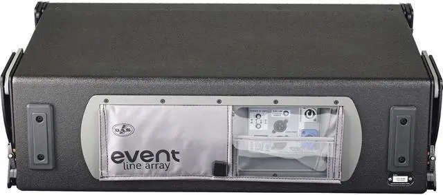 he single D. A. S. Event 208A is a powered, full-range, three-way line array module designed for professional live sound reinforcement applications. The speaker features three built-in Class-D amplifiers, providing 360W of power to the two 8 woofers and the 1.5 compression driver that combine to offer a frequency response of 75 Hz to 20 kHz and a peak SPL output of 132 dB. The two 8 woofers use a twin-band configuration, where each speaker operates in a specific frequency range. Advanced digital signal processing feeds the mid signal to only one of the two low-frequency drivers, while the other is rolled off.