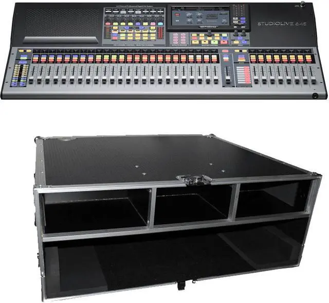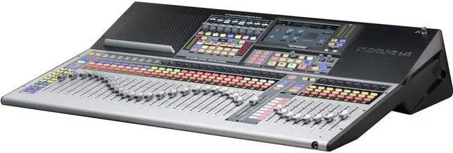 Designed for live sound reinforcement, live recording, and studio recording applications, the PreSonus StudioLive 64S is a Series III S 76-channel digital console, recorder, and audio interface in a single enclosure. The mixer features an integrated hardware and software system with a full-color touchscreen, 33 touch-sensitive, motorized faders and 32 recallable XMAX preamps. The powerful quad-core FLEX DSP engine supercharges the mixer with Fat Channel vintage-style EQs and compressors on every channel, plus an eight-slot FLEX FX processor that can run heralded digital reverbs and delays. Streamline your workflow with recallable scene presets, virtual sound check, and the supplied software library, which empowers you with remote control from a computer or iPad, remote monitor mixing using a mobile device, and all the software you need to track, edit, mix, and distribute your music.
