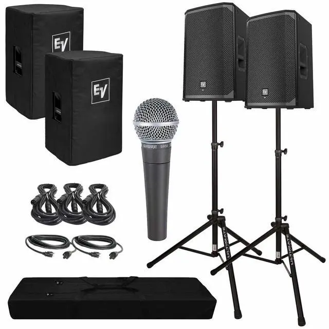 With a 12 woofer and a 1 titanium compressor driver, the EKX-12P from Electro-Voice is a powered two-way Loudspeaker providing 1500W of Class D amplification. Its suitable in live-music scenarios, lecture setups, and generalized nightclub use. The loudspeakers integrated QuickSmartDSP technology can be modified using the LCD-based menu-navigation screen and the single-knob user interface. Four presets of DSP are provided for various settingsMusic, Live, Speech, and Clubthough EQ manipulation and five user-programmable presets are all adjustable. Visual monitoring of your limiter, input metering, and master volume allow you to gain-stage properly.