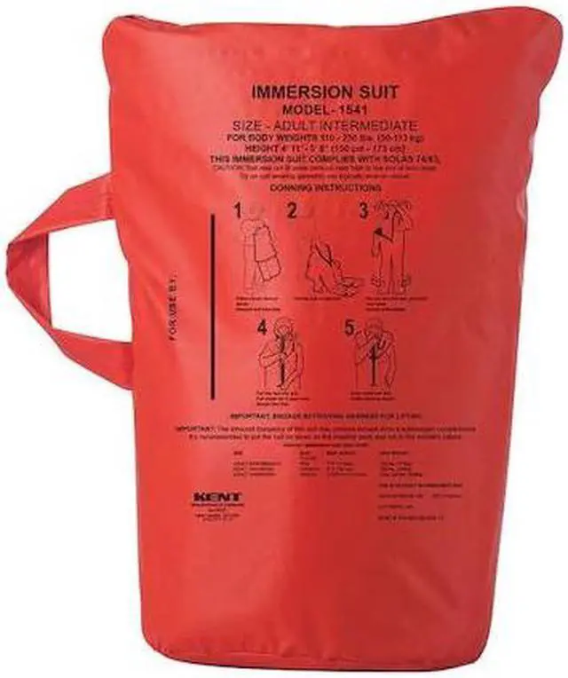 Immersion Suit Replacement Bag, Compatible with Manufacturer Model Number 154100-200-020-13, Buoyancy 15 1/2 lb, Product Type Immersion Suit Bag, Color Red, Standards MED, SOLAS, USCG, Bag Size Intermediate, Closure Type Zipper, Flotation Material Foam, Outer Material Fabric, Compatible with Grainger Part Number 59ME31