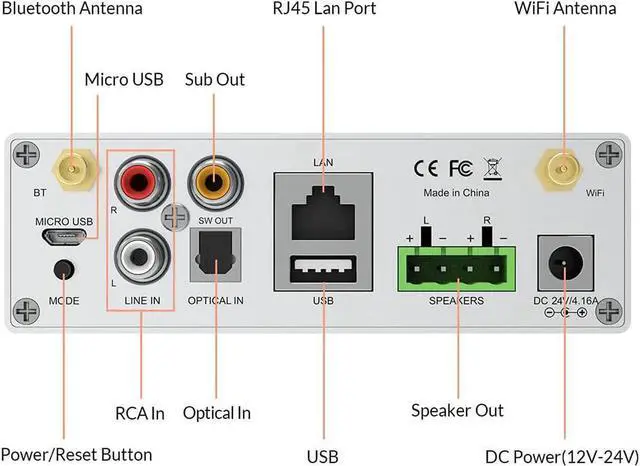 Multiple Music Sources & Protocols: Supports Spotify, Tune in, iHeartRadio, XIMALAYA, QQ Music, TIDAL, Napaster, Qobuz, QQFM etc. And airplay1, Qplay, DLNA, UPnP protocols. Also Other audio sources for local music, USB flash drive, NAS and line inputs.