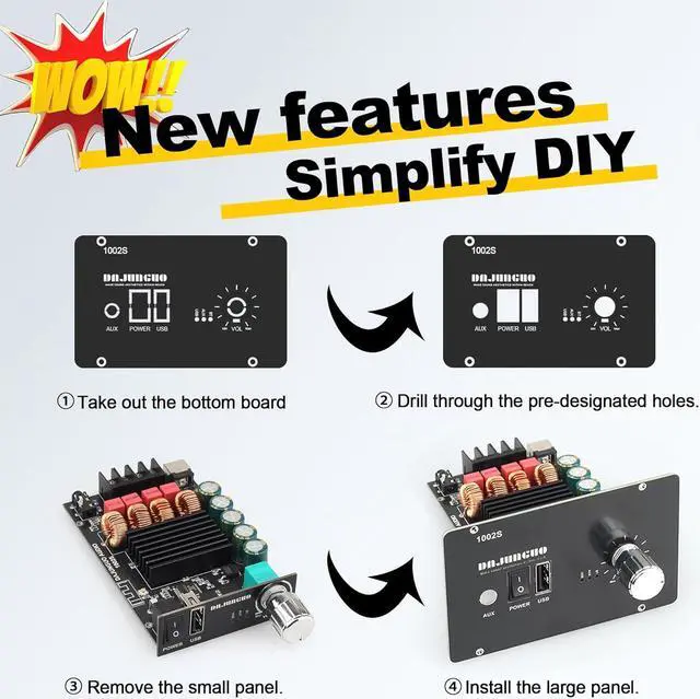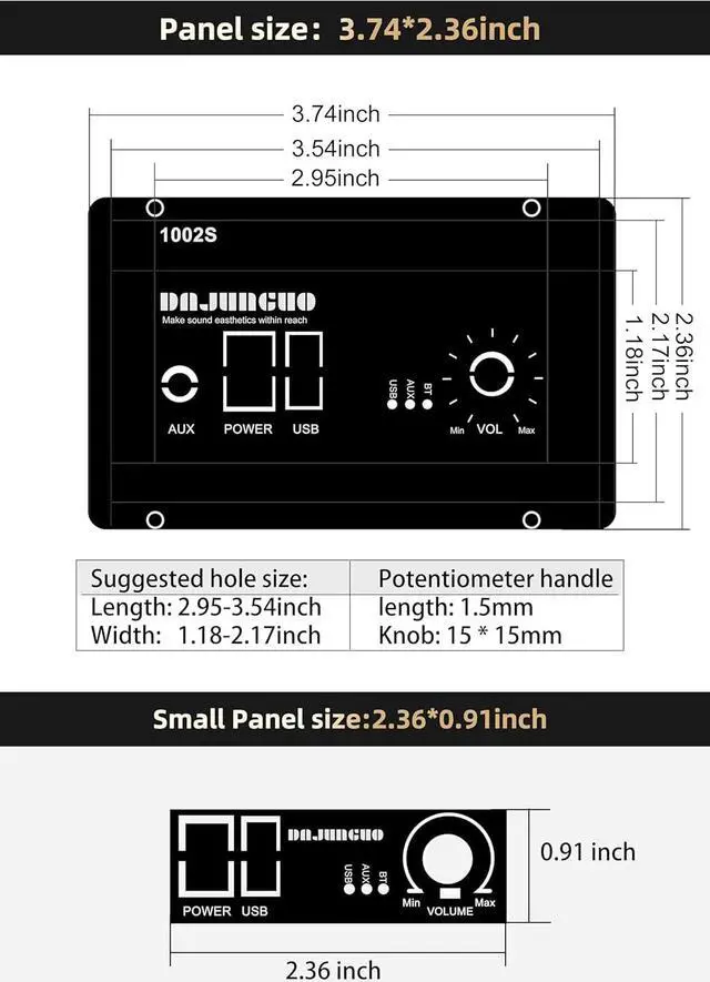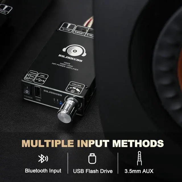 Multiple Input MethodsThe amplifier board supports various input methods, including Bluetooth input, 3.5 mm AUX input, USB input, and more. It is compatible with a wide range of devices such as smartphones, tablets, laptops, MP3 players, etc. You can easily switch between your preferred audio input methods.