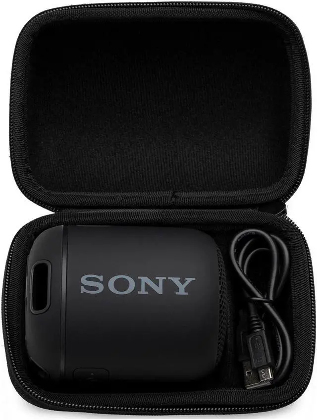 The Knox Gear Hard Shell Speaker Case is compatible with the Sony SRSXB10 and SRSXB12 speakers. It features a zippered half-shell design with storage for a USB charging cable. The case is water, dust, splash, and impact resistant, which protects your devices from dents and scratches.