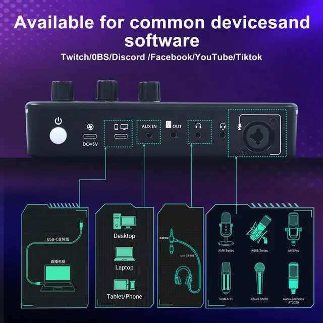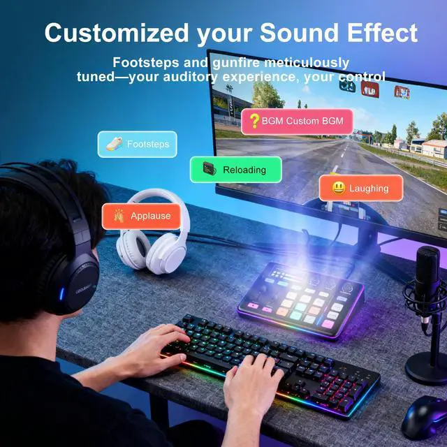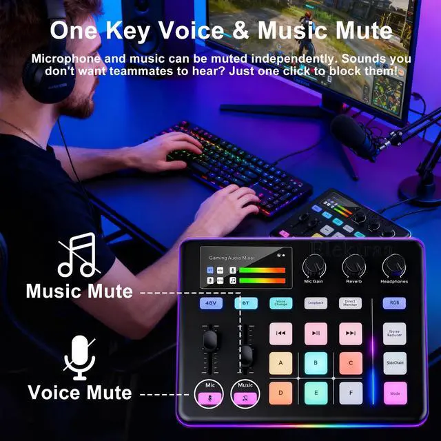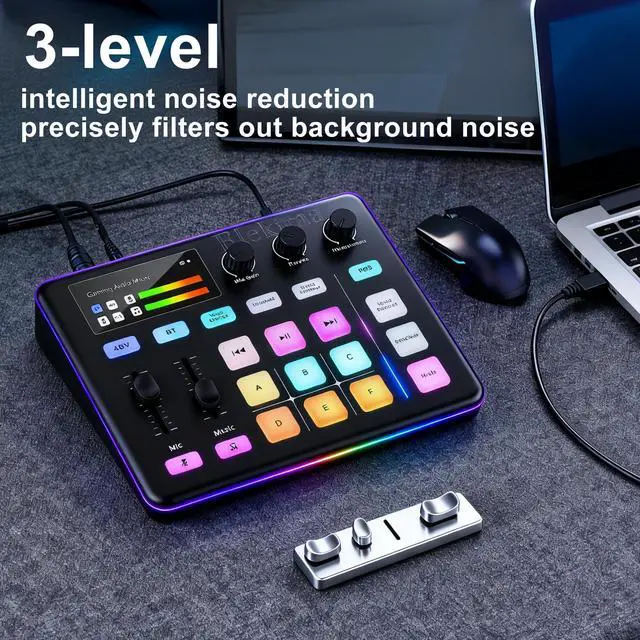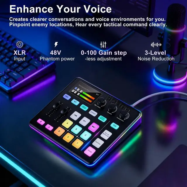 Essential Kit for Streaming SetupThis game audio mixer, as an essential gear for gamers and up-and-coming streamers diving into the world of gaming streaming,not only delivers outstanding sound performance but also integrates customized sound effects and captivating RGB lighting to immerse you in gaming or streaming.