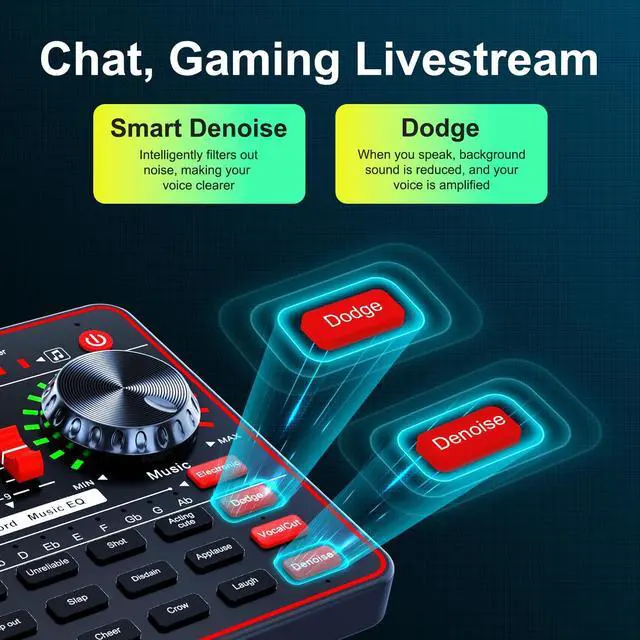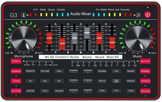 Noise ReductionEquipped with noise reduction, the sound mixer ensures your voice comes through crystal clear, ideal for podcasts, voiceovers, and live streaming with minimal background noise.