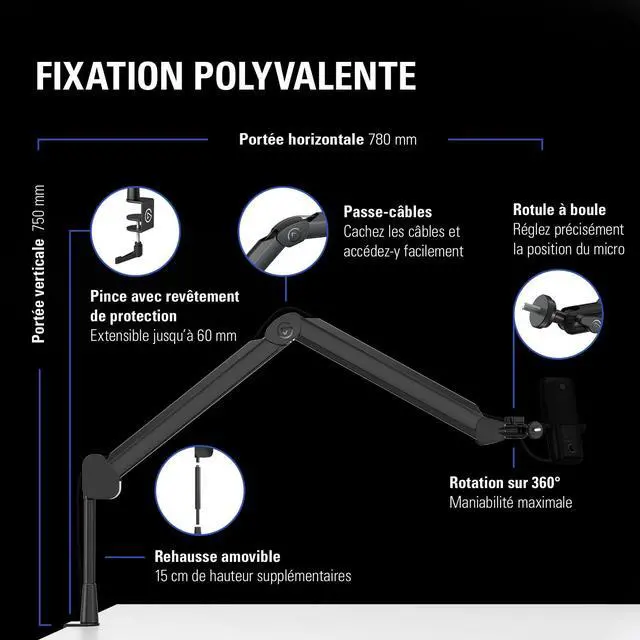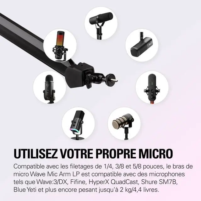 Wave Mic Arm - Premium Broadcasting Boom Arm with Cable Management Channels, Desk Clamp, 1/4" Thread Adapters, Fully Adjustable, perfect for Podcasts, Streaming, Gaming, Home Office, Recording