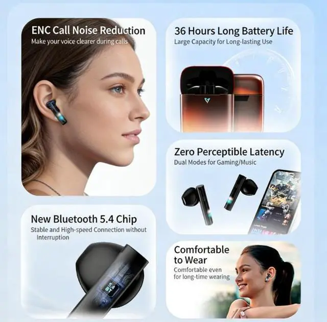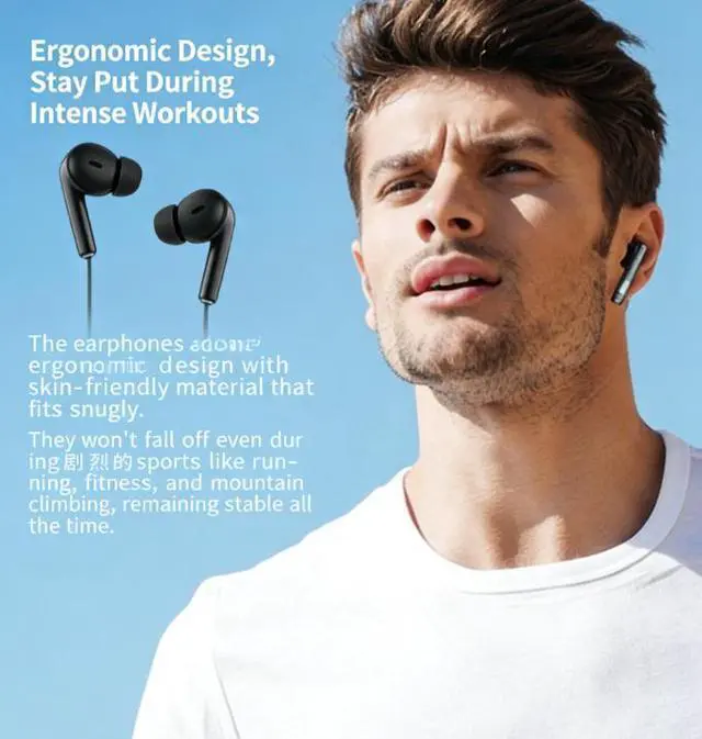 Ergonomic inear design fits snugly and comfortably in ears, not easy to fall out, suitable for longtime wearing during sports, work, or travel.