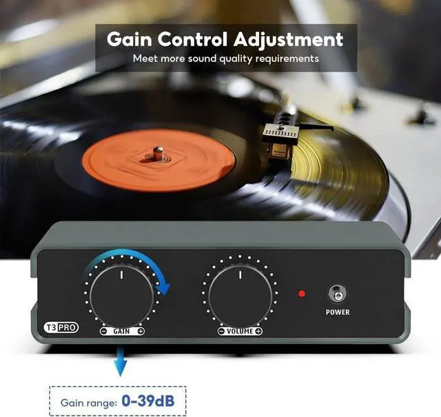 Preamp Gain ControlIt supports MM and MC cartridges with a 0-39dB gain setting, switchable via the front panel.