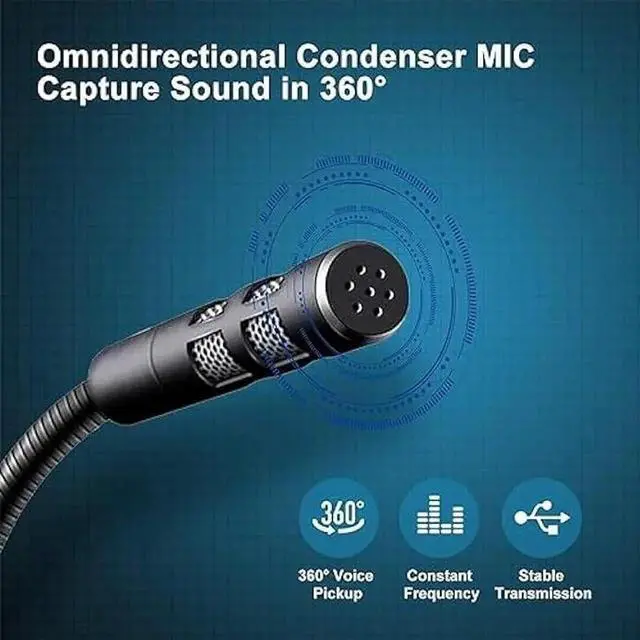 {360 Degree Flexible Gooseneck Design}Durable tube with metal material, PC microphone allows you to adjust the perfect angle, height or swivel to record your voice. The on/ off button setting of the steady wide stand allows you to fix the unexpected noise.